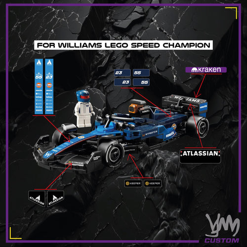 Pack de stickers Atlassian Williams F1 édition livrée 2025 pour Lego Speed Champion 77249 - Alex Albon / Carlos Sainz